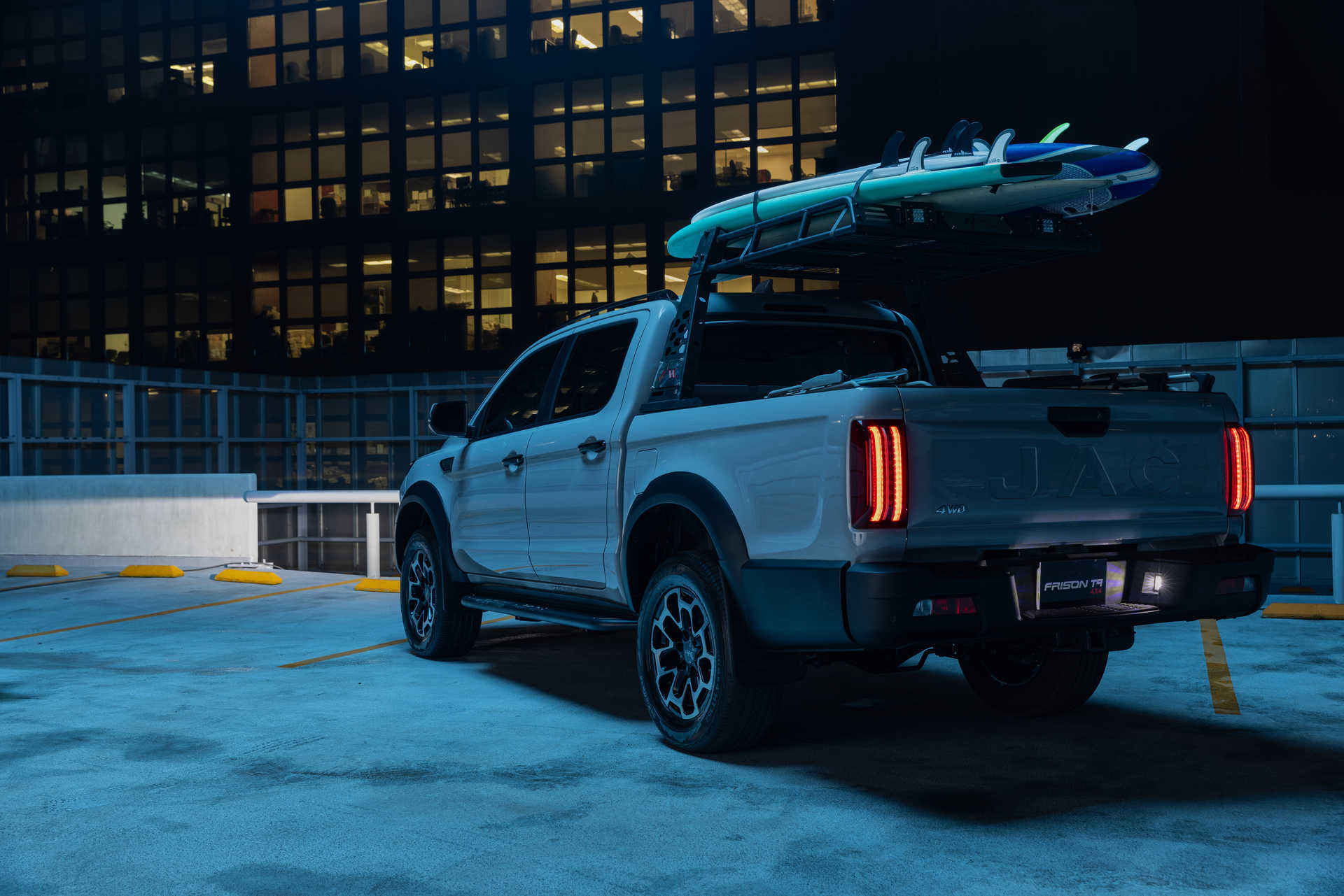 Eye-catching two-tone 18-inch alloy wheels with a floral-inspired design and 265/60 R18 tyres perfectly fit the gutsy-looking JAC T9 Pickup.